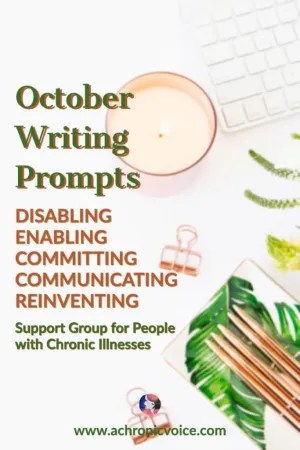 I was delighted when Sheryl from “A Chronic Voice” sent out the October Writing Prompts , as it had been a while since the last one and I know that Sheryl has been going through a lot this year. I love participating in these linkups, reading about other people all over the globe who are going through similar issues with chronic illness and the resulting sense of solidarity and community.