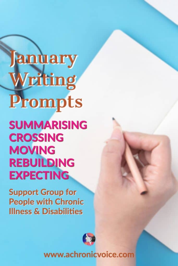 First of all, Happy New Year to everyone! As always, I am glad to be taking part in the monthly writing prompts on A Chronic Voice. The prompts this month are as follows: